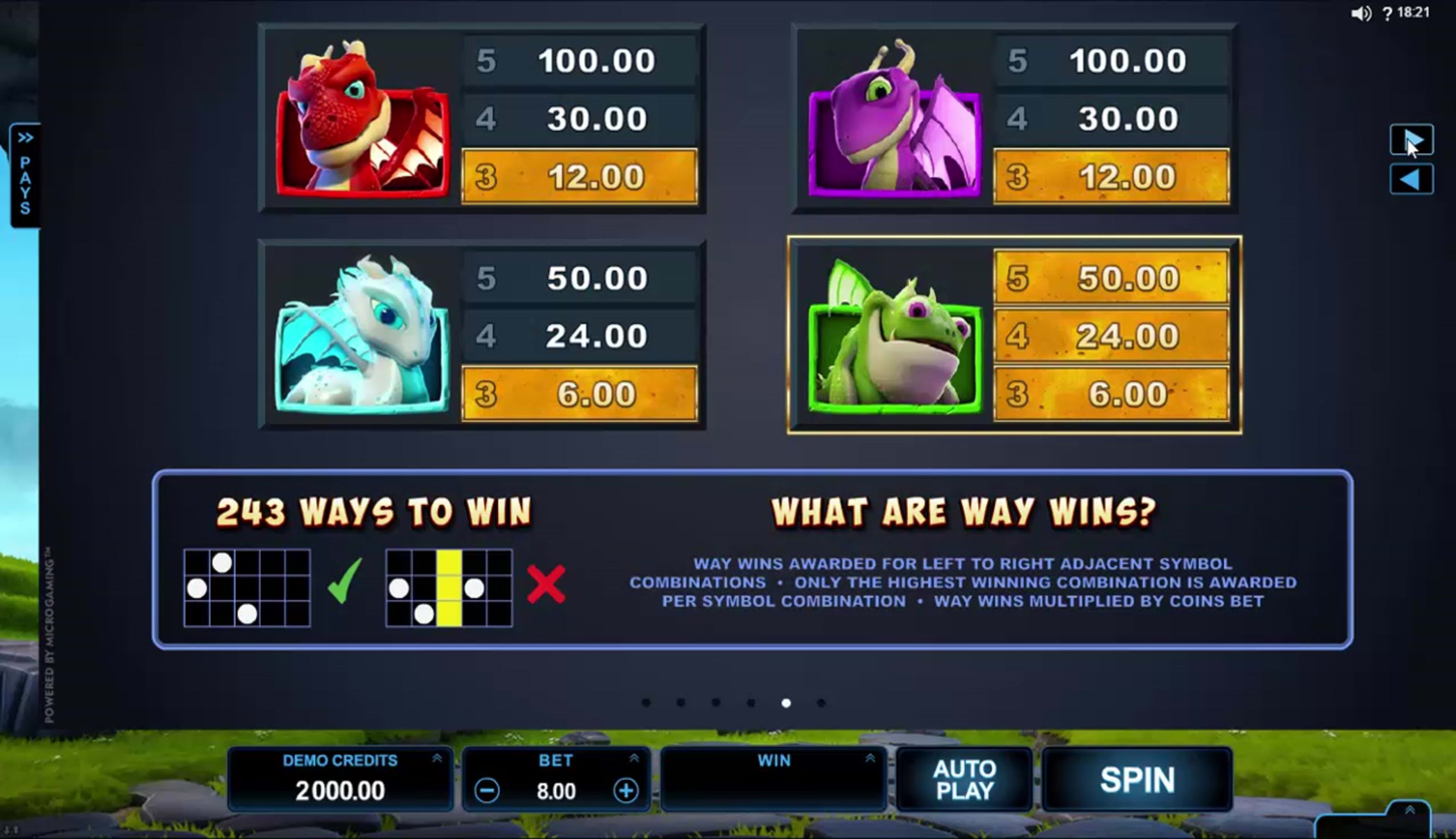 För Dragonz gick Microgaming med några ganska låga spelkrav, åtminstone jämfört med vad de vanligtvis har i sina slots. Det mest du kan satsa på en enda runda är $ 30. Du verkar alltid spela med motsvarande 40 linjer, vilket spelet anser vara tillräckligt för att täcka sina 243 sätt att vinna som du faktiskt använder för att bilda kombinationer. Du kan ha så många som 15 mynt per virtuell linje, men deras valör kommer bara att uppgå till $ 0,05, därmed den relativt låga maximala insatsen. Det minsta möjliga spelet i spelet är värt $ 0,40.