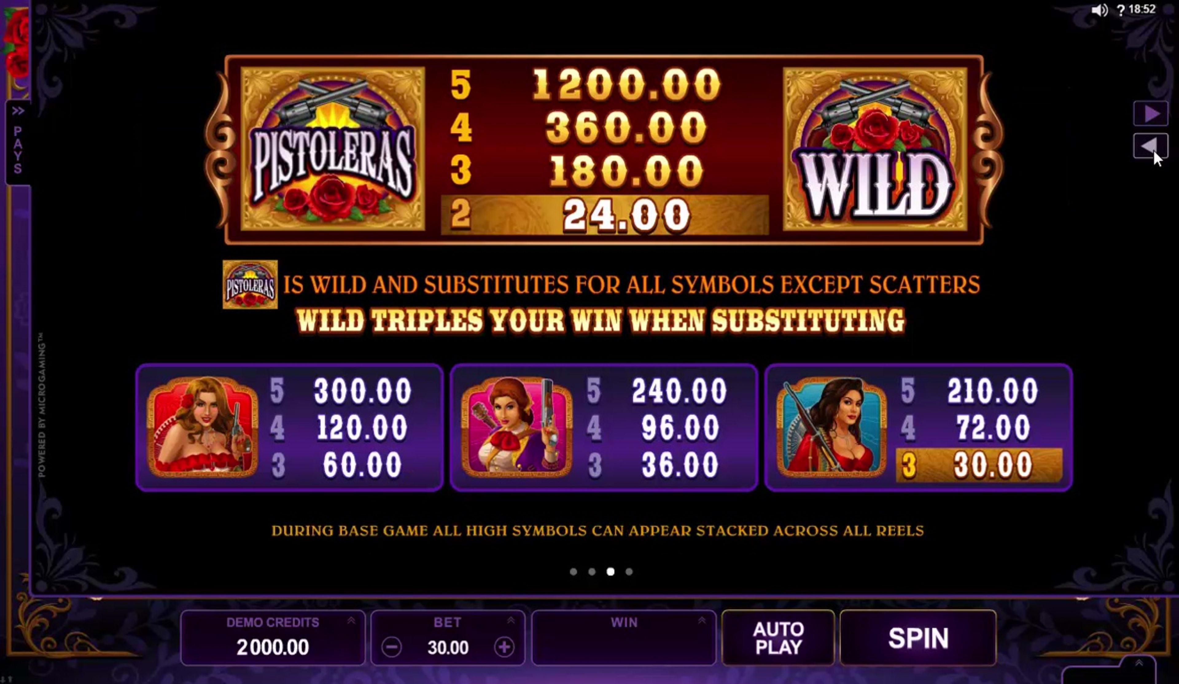 Pistoleras är ett spel som har beväpnade mexikaner som huvudpersoner, men med den mycket viktiga skillnaden att de alla är attraktiva kvinnor på samma gång. De råkar bara vara beväpnade med revolver och pistoler, som du vanligtvis ser sheriff och skurkar i Wild West slots. Spelet ger spelaren 25 aktiva linjer att använda varje omgång, med en chans att vinna ett topppris på $ 150 000. Bland funktionerna i denna 5-hjuls slotmaskin kommer du att möta ett vildt som tredubblar dina vinster, Saloon-bonusspelet, plus en spridning som ger dig gratissnurr och tredubblade vinster igen.