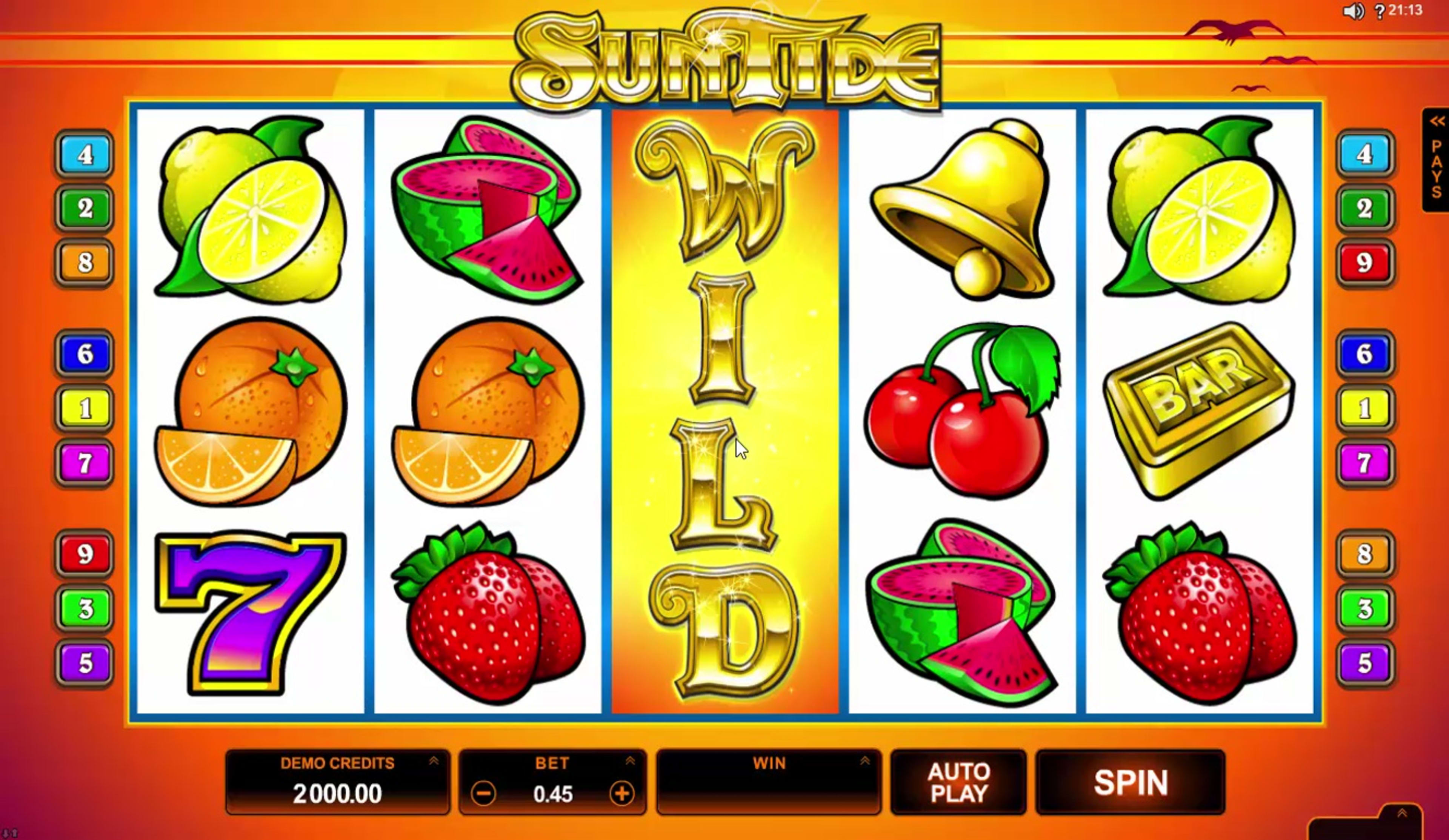 Sun Tide är en nyligen släppt spelautomat från Microgaming, men samtidigt kommer du att upptäcka att den har ett äldre tema, baserat på klassikerna, och att den är blandad med bilden av solen. Trots titeln och bakgrundsbilden kommer majoriteten av symbolerna som används inuti att baseras på de klassiska ikonerna. Sun Tide har bara 9 aktiva linjer, om du vill ha dem alla, och de är placerade i en installation med 5x3 rullar. Du har en chans att vinna priser upp till $ 100.000. När det gäller de viktigaste funktionerna som finns tillgängliga inne, består de av vilda symboler som kan expandera, av spridare och gratissnurr som kan tas ut igen.